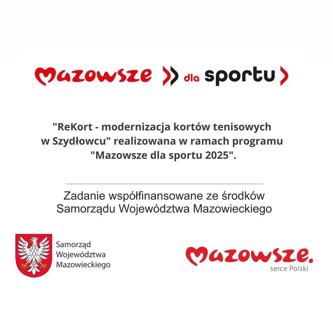 Zadanie "ReKort - modernizacja kortów tenisowych w Szydłowcu" współfinansowano ze środków Samorządu Województwa Mazowieckiego. Gmina Szydłowiec na realizację zadania otrzymała dofinansowanie w kwocie 237 117 zł.