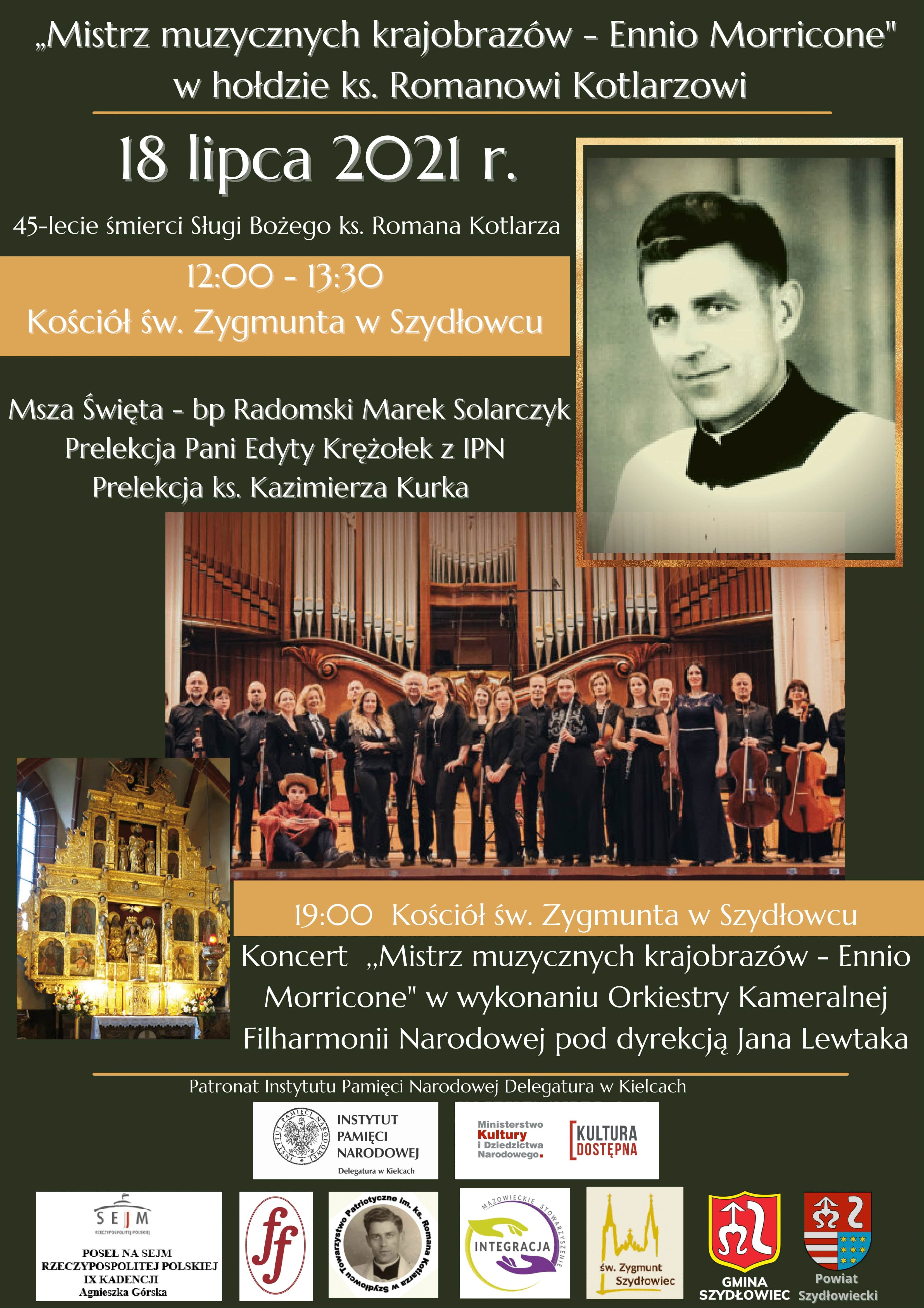 O godzinie 19:00 w kościele św. Zygmunta odbędzie się koncert Ennio Morricone „ Mistrz muzycznych krajobrazów” w wykonaniu Zespołu Kameralnego Filharmonii Narodowej pod kierownictwem artystycznym Jana Lewtaka.