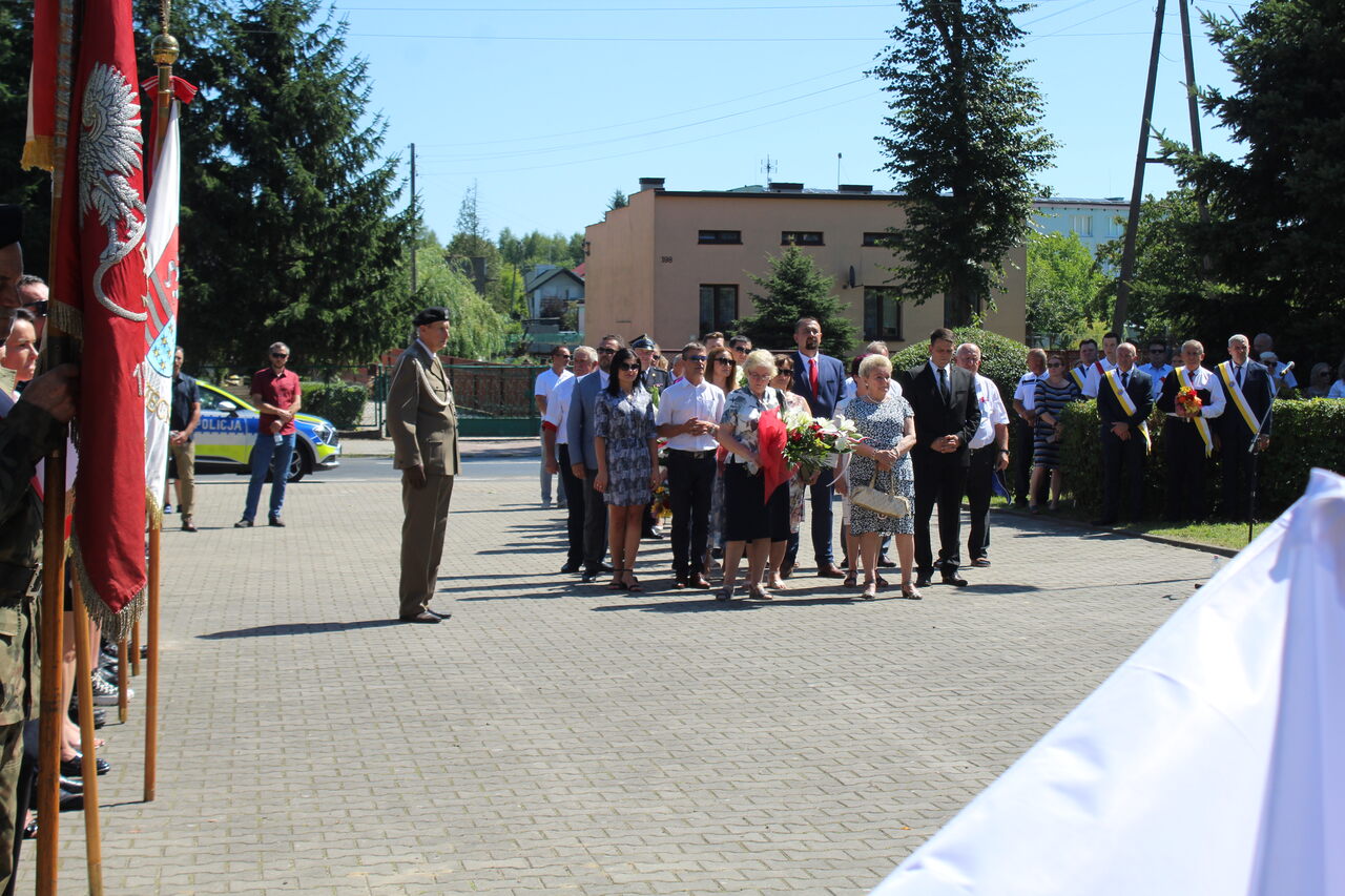 Po przemówieniach odśpiewany został wspólnie Mazurek Dąbrowskiego, a po nim delegacje złożyły biało – czerwone kwiaty pod pomnikiem Marszałka Józefa Piłsudskiego – głównego autora zwycięstwa z 1920 roku, gdzie swoją wartę mieli strzelcy z Związku Strzeleckiego - Oddział Szydłowiec im. Henryka „Hubala” Dobrzańskiego.