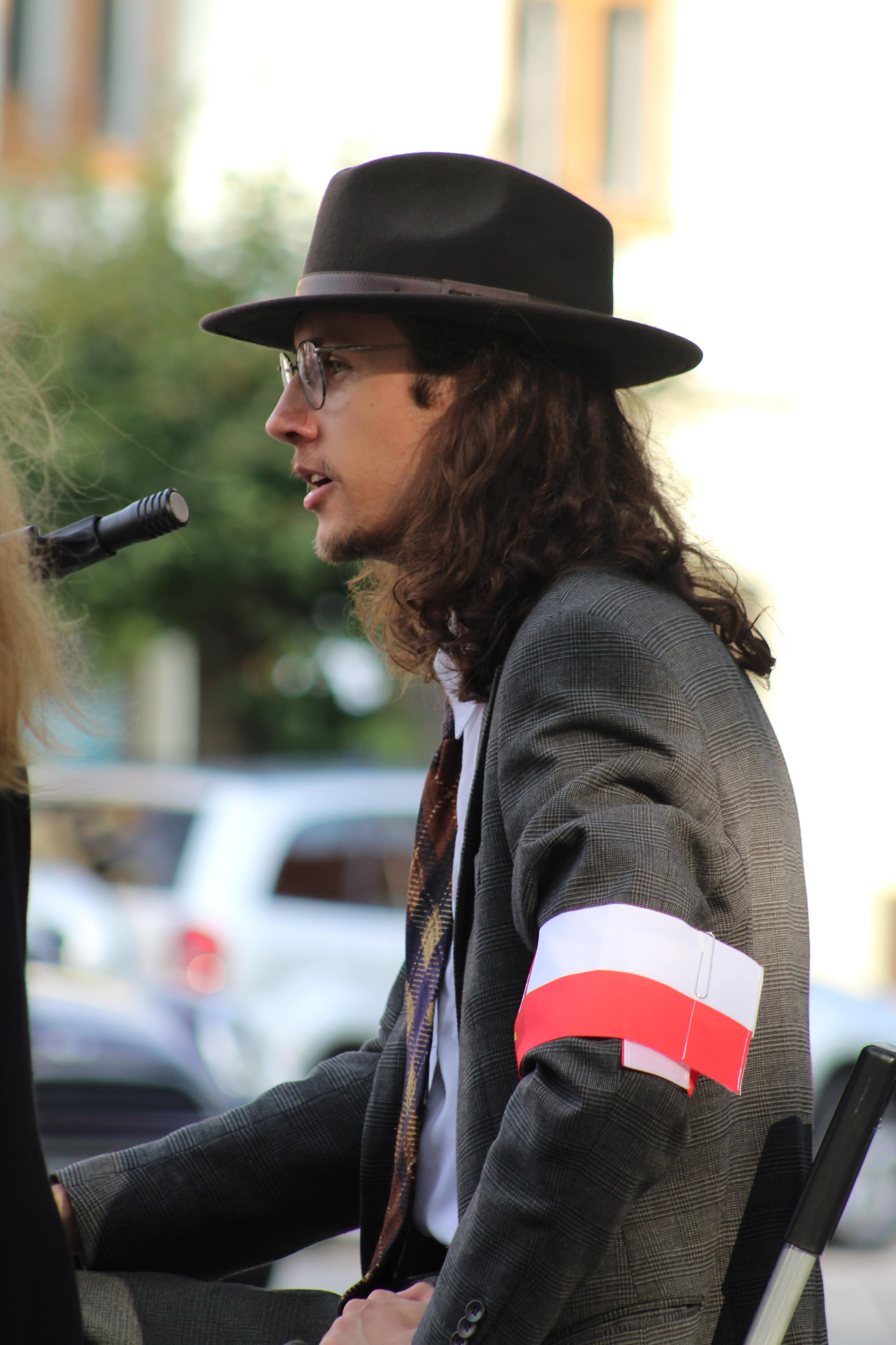 Na chwilę przed godziną „W” , Piotr Lendzion i Michał Bojczuk wyrecytowali w oknie szydłowieckiego Ratusza wiersz Antoniego Słonimskiego pt. „Alarm”.