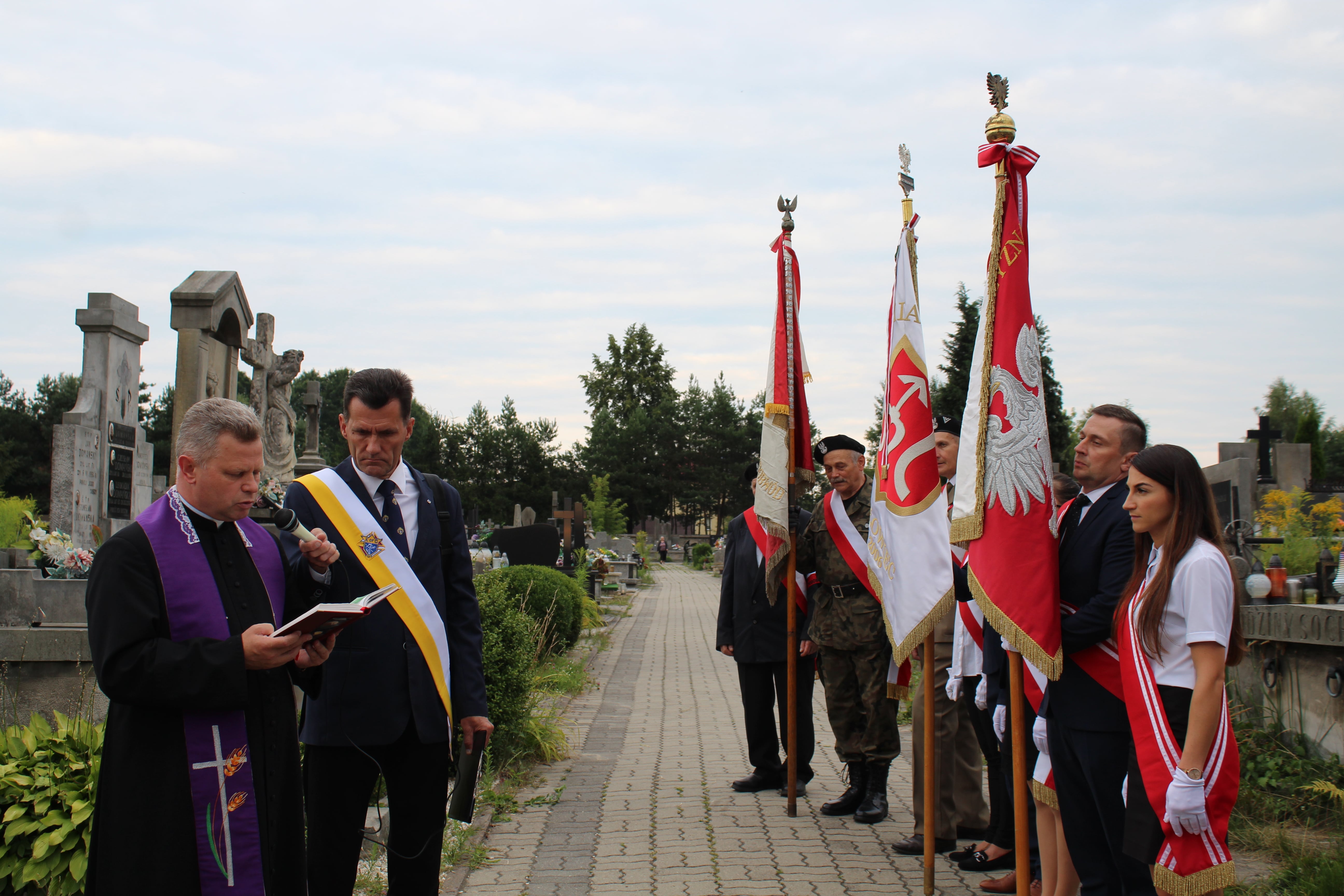 Po mszy, poczty sztandarowe, samorządowcy i mieszkańcy miasta przeszli na cmentarz parafialny, który jest miejscem wiecznego spoczynku powstańców. Na szydłowieckim cmentarzu pochowani są bracia Roman i Henryk Olędzcy – harcerze Szarych Szeregów i młodzi żołnierze Powstania. W wyniku walk powstańczych 3 września 1944r. zginął czternastoletni Roman, cztery miesiące później, również w wyniku działań wojennych, śmierć poniósł jego brat Henryk. Na cmentarzu spoczywają też inni uczestnicy bohaterskiego zrywu – Ryszard Cugak, Tadeusz Stamirowski i Stanisław Wierzbicki.
